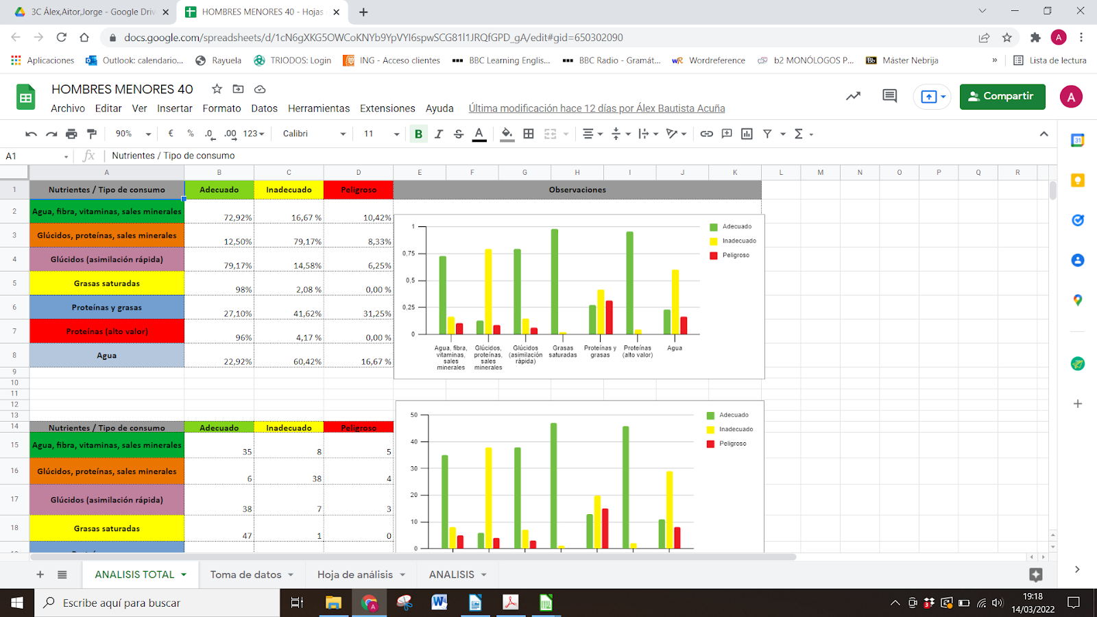 dieta de los profesores del IES San Martín de Talayuela. A partir de